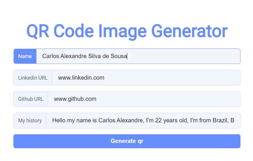 Uma aplicação para gerar QRCode que apresenta um card com informações do usuário.